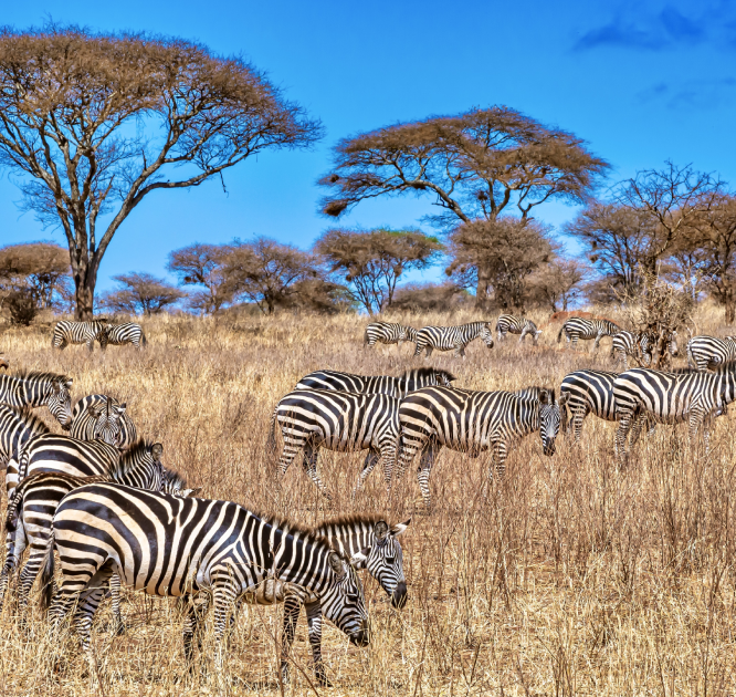 During this time, the animals migrate to the few remaining waterholes in search of water, which increases the visibility and diversity of wildlife. The Great Migration also takes place during these months, with millions of wildebeest, zebra and antelope migrating between the Serengeti in Tanzania and the Masai Mara in Kenya, creating an impressive natural spectacle.